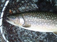 全般的に反応が良かったのは、日陰になっている場所だった。湖ではスプーンのスローリーリング一辺倒のアングラーが多かったけど、ヒットの数は明らかにミノーに分があったようだ。しかもサイズがよく、イワナやブルック、ヤマメ、そしてブラウントラウトまで姿を見せてくれた。惜しくもバラシてしまった50cmアップのブラウンは、なかなかのファイトを見せてくれた。基本的にはグリグリメソッドのロッドアクション版で、速度の付け方によってトラウト達の反応は違ってきていた。フックもバーブレスにしてあったので、フッキングが楽だったことも付け加えておこう。